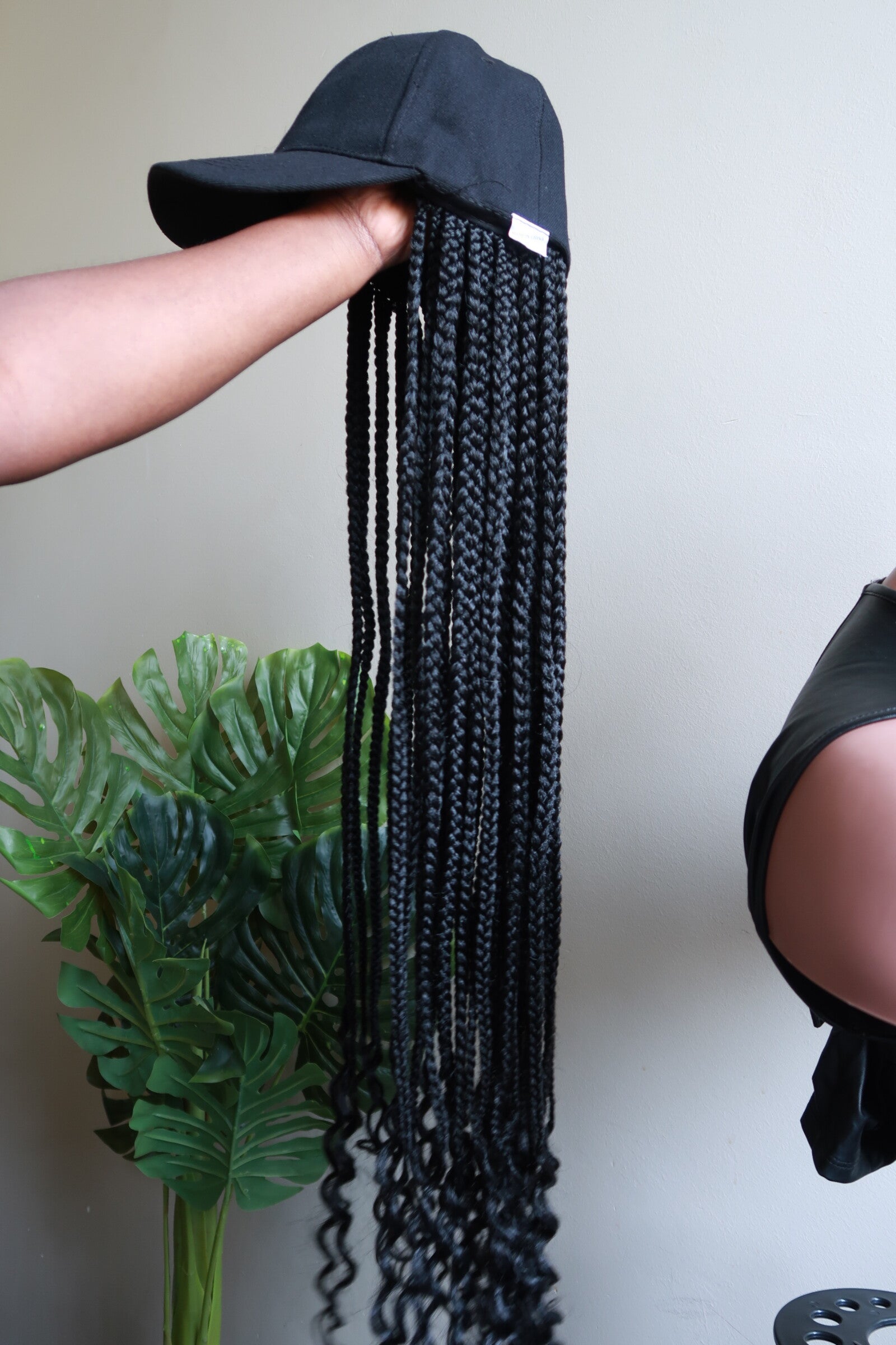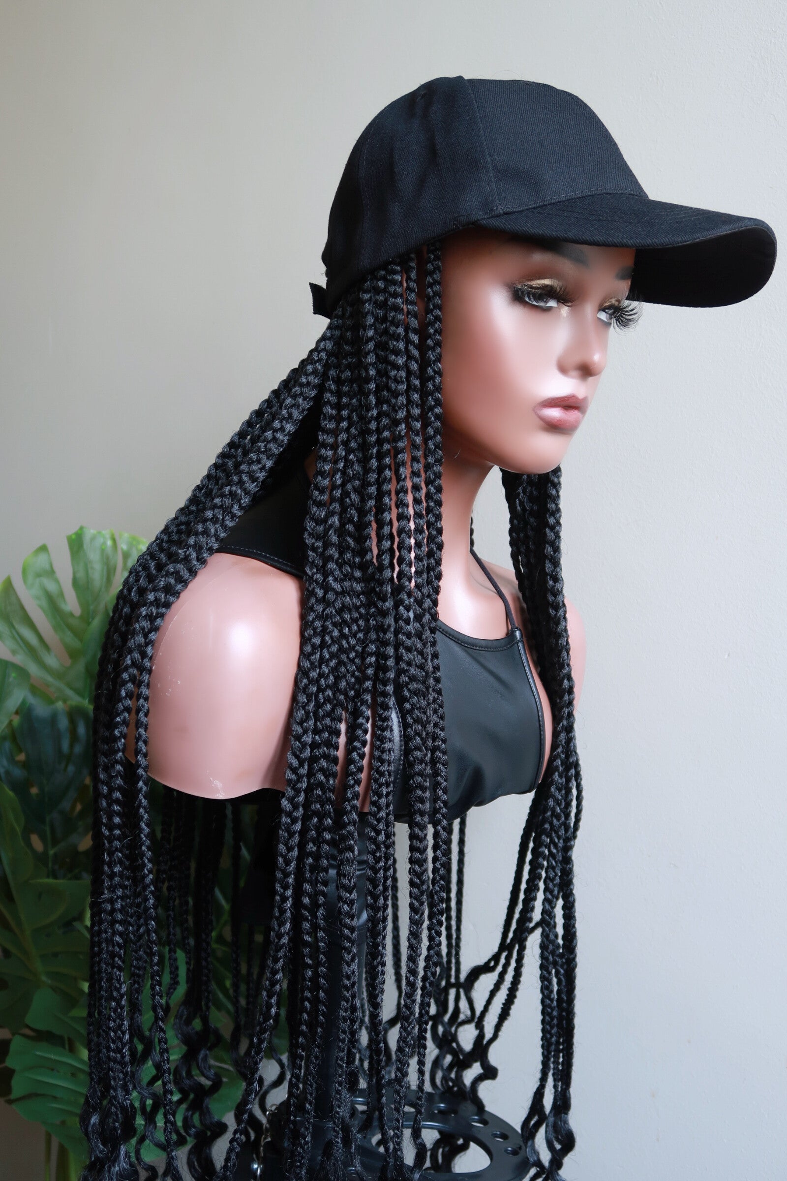 Baseball Cap Wig with Curly Box Braids