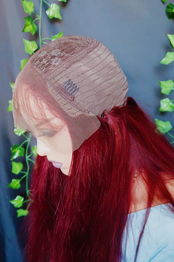 Queen Burgundy T Part Lace Human Hair Wig
